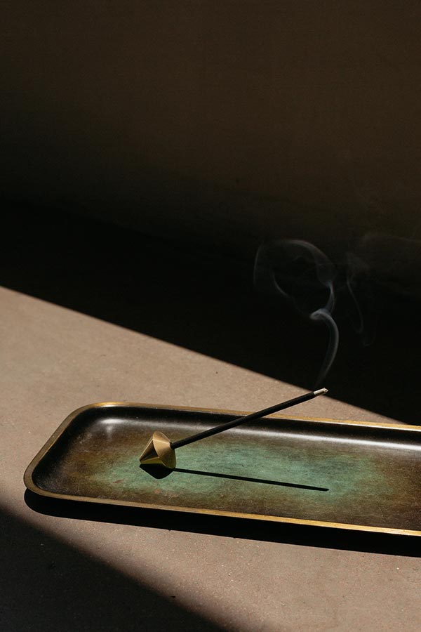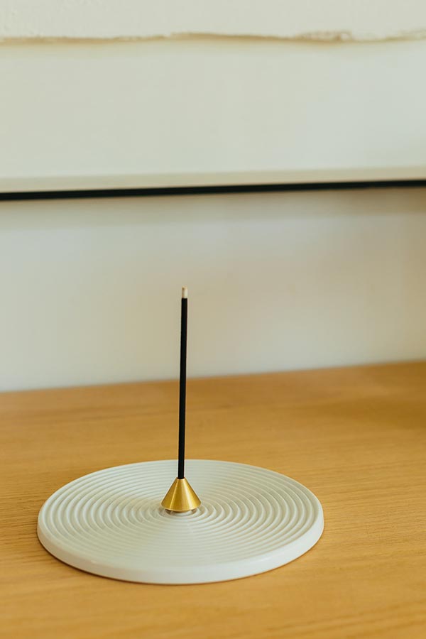 The tools play a big role in enjoying incense. What you experience from burning incense is the delicate fragrance of the smoke, the upright stance of the incense and the line left by the falling ash. Let us introduce you to the tools in the elemense incense line that complement the ensemble of linear line and fluid shapes. Starting with our “Acorn brass incense holder.”